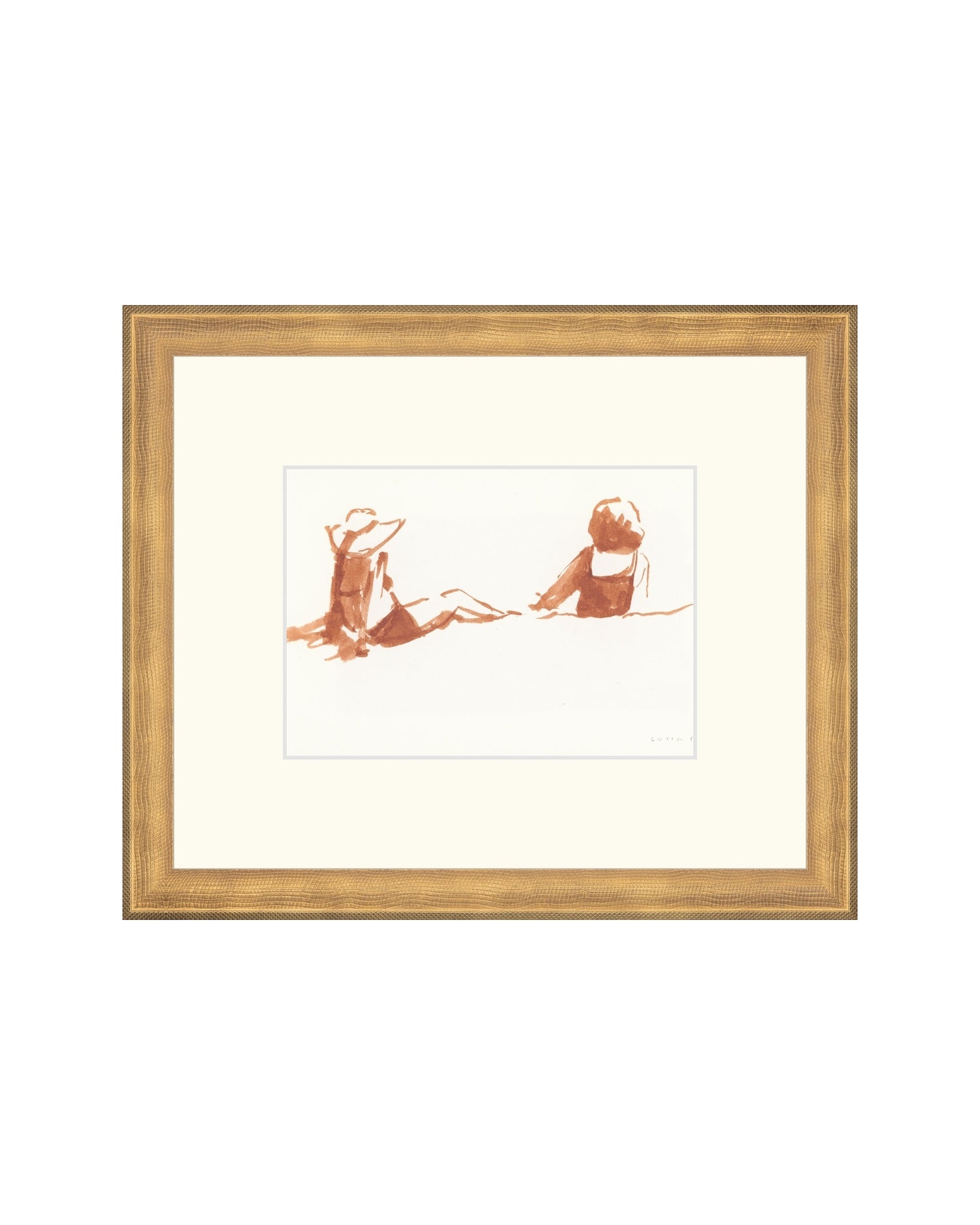 An ink sketch of two bathers under the sun at the beach, drawn from life with loose, expressive lines.
