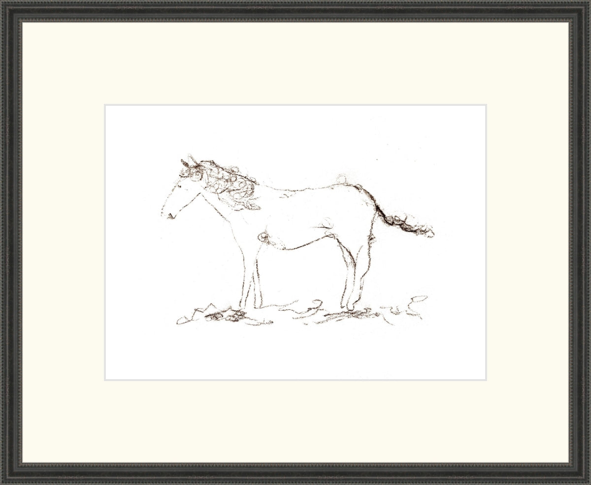 Uploaded Art:Horse Drawing copy.jpg. Frame: Double Beaded Black. Paper: Rag Paper. Art Size: 8x11. Final Size: 13'' X 16''